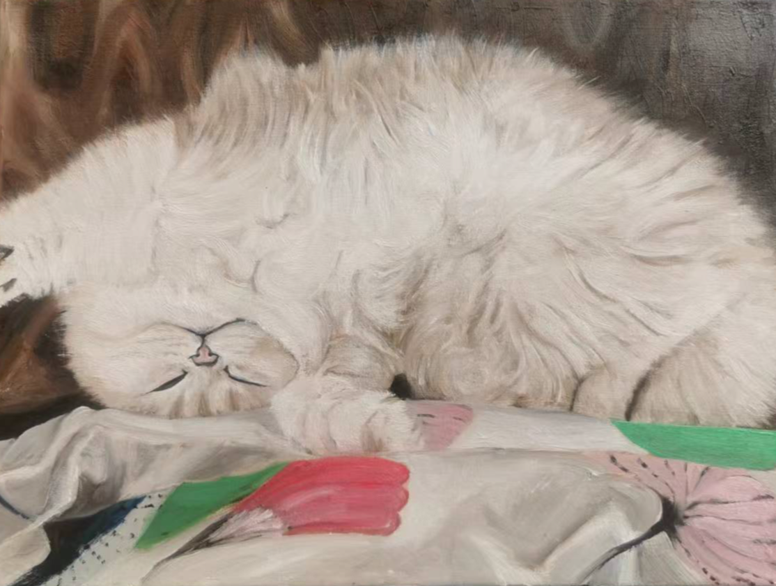港漂变北漂,新工作伴随新压力,直到接触油画,似找到灵魂出口。画室老师打趣:好好的姑娘怎么净画些豺狼虎豹。那时习惯坚硬面对一切,有时候连爱自己也生疏。