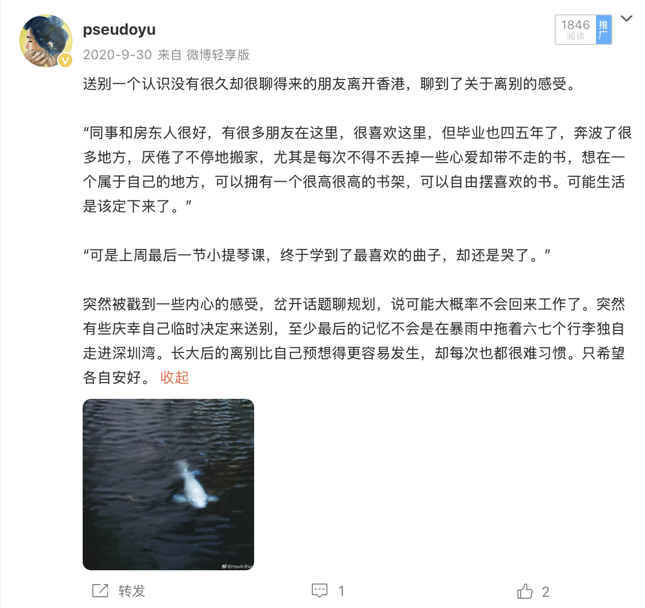 送别一个认识没有很久却很聊得来的学姐离开香港,说可能大概率不会回来工作了。突然有些庆幸自己临时决定来送别,至少最后的记忆不会是在暴雨中拖着六七个行李独自走进深圳湾。长大后的离别比自己预想得更容易发生,却每次也都很难习惯。只希望各自安好。